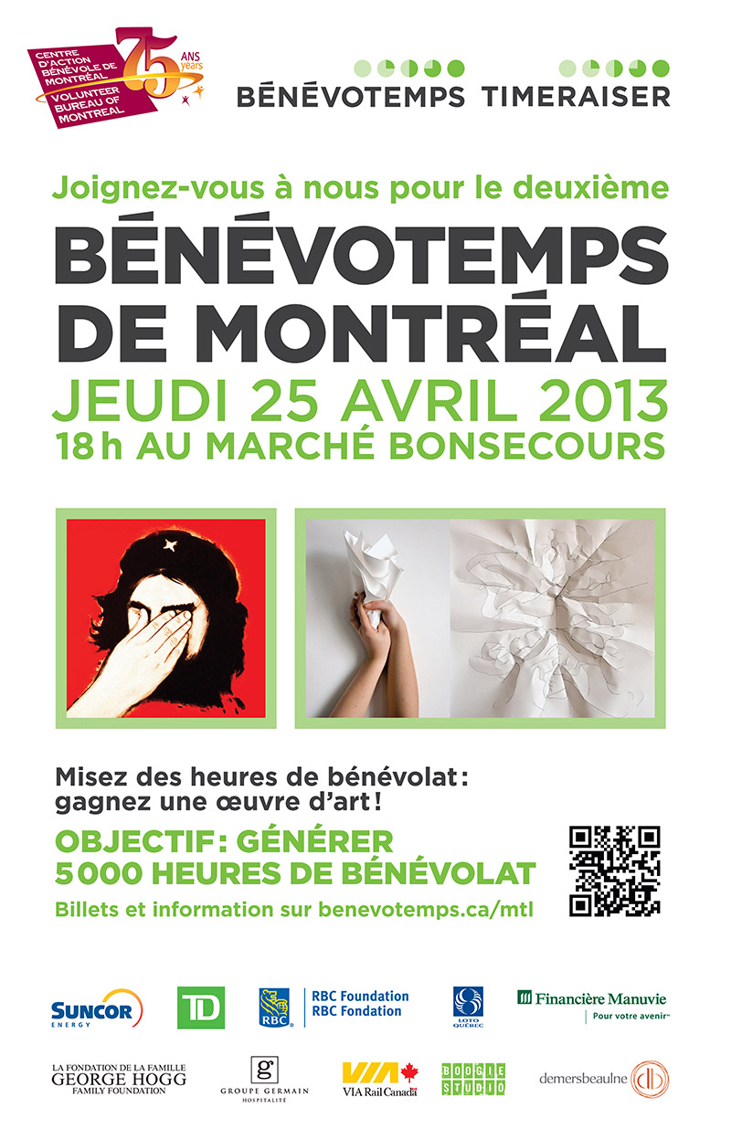Une assistance principalement composée de jeunes professionnels désireux de partager leurs champs de compétence (marketing, collecte de fonds, conseil d'administration, graphisme, comptabilité, traduction, etc.). Trente-six organismes à but non lucratif à la recherche de bénévoles. Une trentaine d'oeuvres d'art réalisées par des artistes de la relève montréalaise (et payées jusqu'à 1 000 $ pièce).